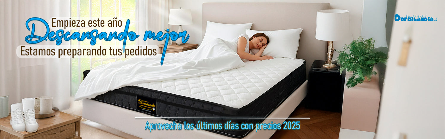 Mega Combo Colchón Híbrido Resortado Doble Sensación + Base Cama + Cabecero + Almohadas