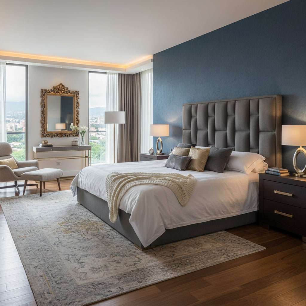 El Cabecero Supra es el toque perfecto para tu dormitorio. Disponible en diferentes medidas y cinco colores a elección, este elegante cabecero combina un núcleo de madera de pino con un forro de microfibra sintética de alta calidad. No solo agrega un toque de sofisticación a tu espacio, sino que también ofrece comodidad y apoyo para tus momentos de lectura o relajación en la cama. Elige el Cabecero Dublín para darle a tu dormitorio un aspecto y sensación de lujo. Tu estilo y comodidad son nuestra prioridad.