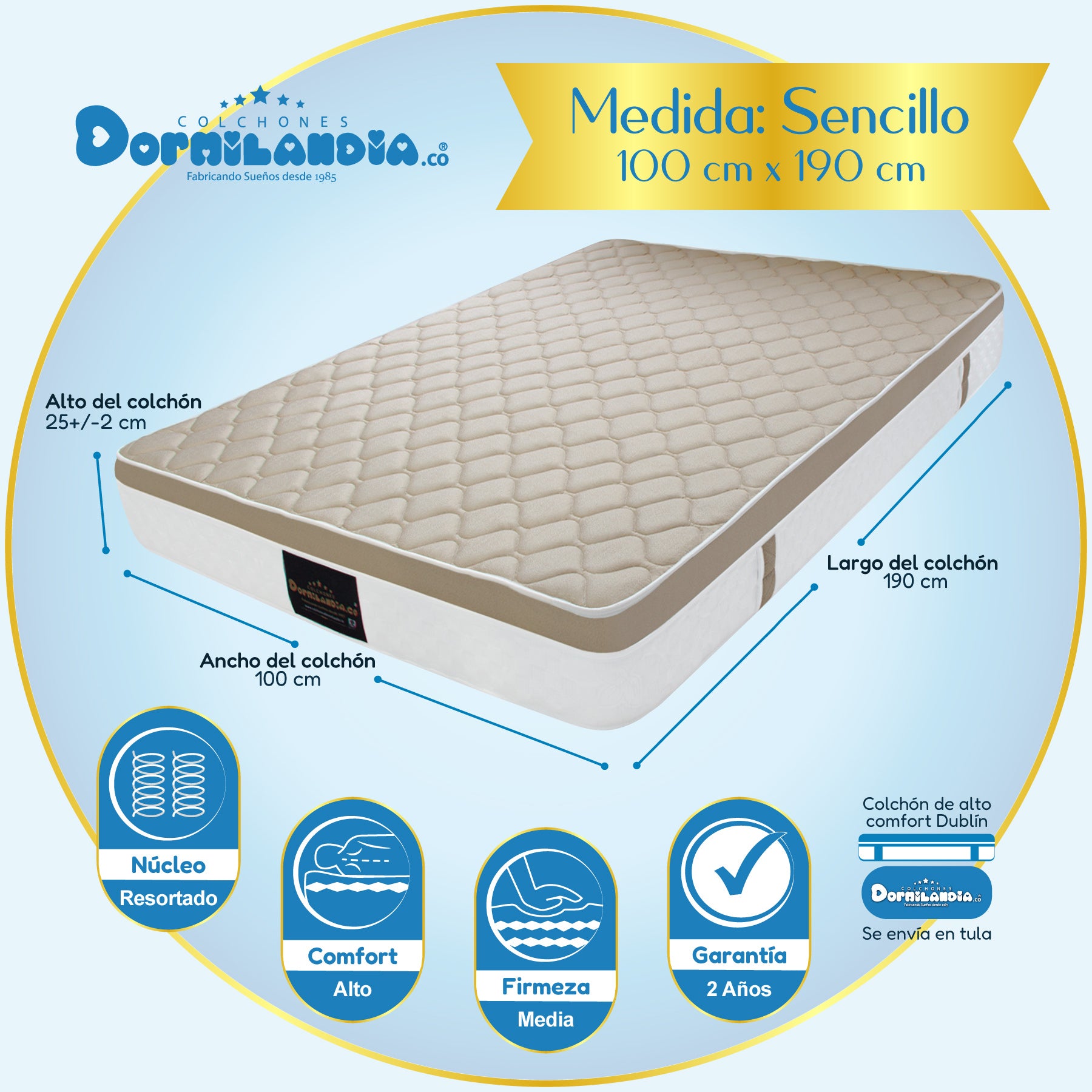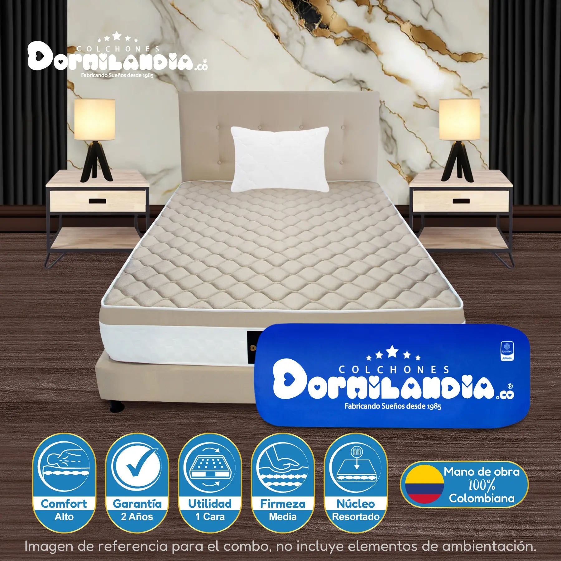 Mega combo Colchón Resortado Dublín Enrollado En Tula Confortable + Base Cama + Cabecero + Almohadas